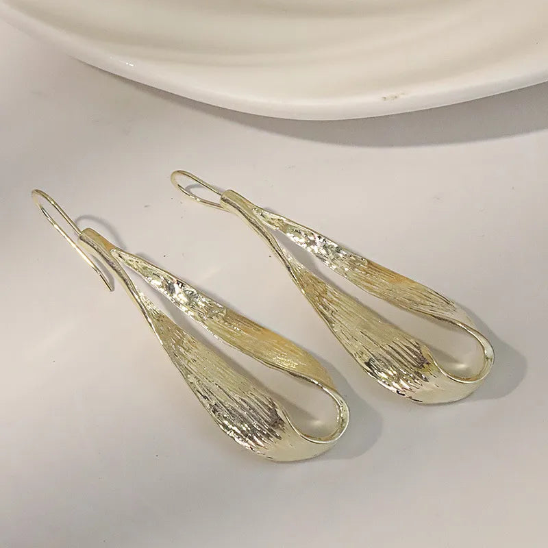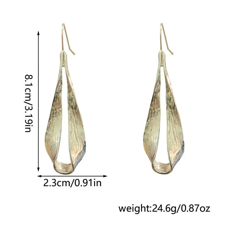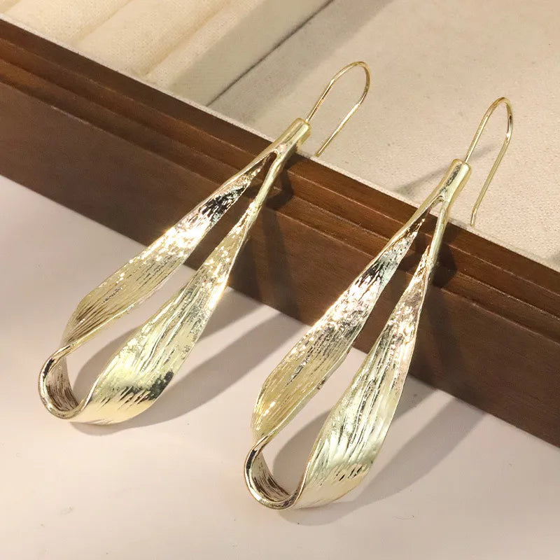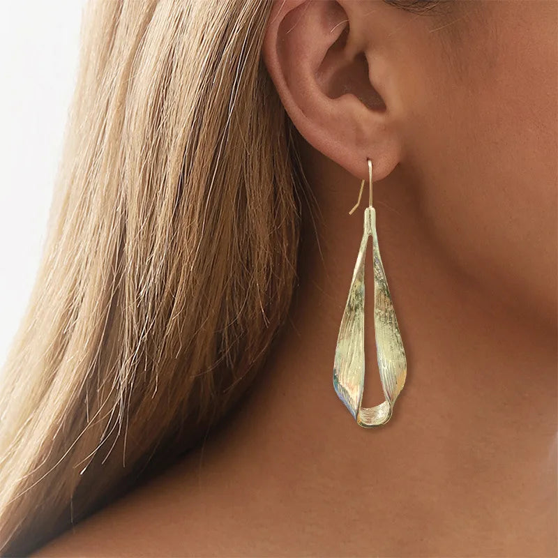 Sculpted gold drops with a flowing leaf-like form, symbolizing growth and grace. A bold, artistic piece for effortlessly elevated style.