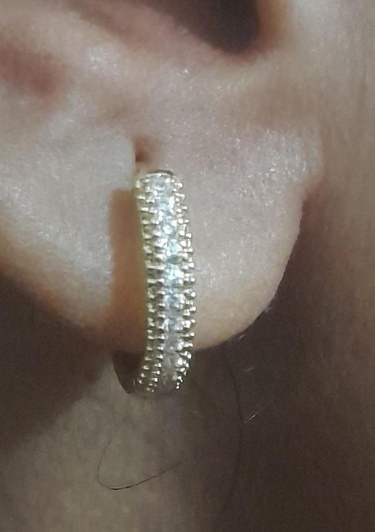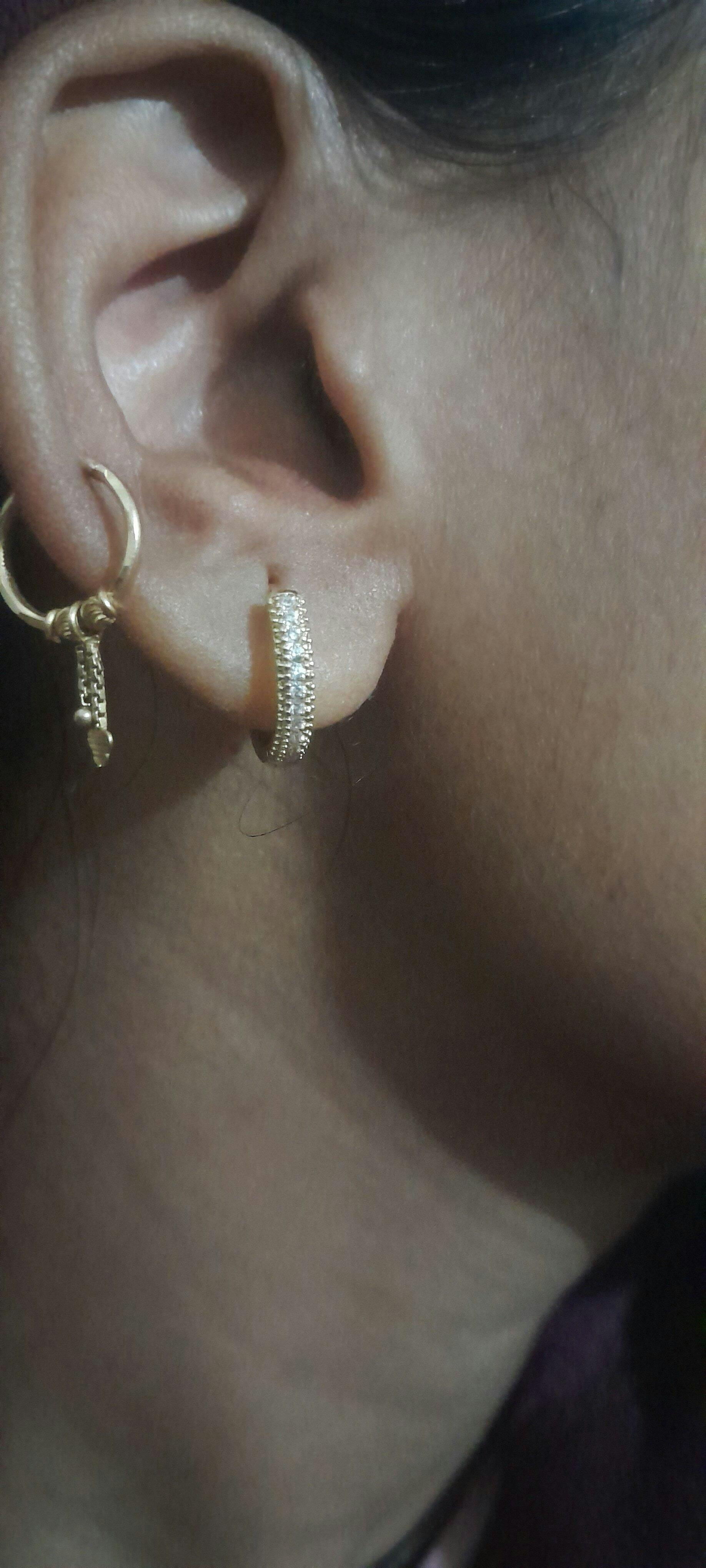 Elegant gold huggies lined with sparkling micro stones, symbolizing grace and harmony. Perfect for daily shine with a sleek, timeless finish.