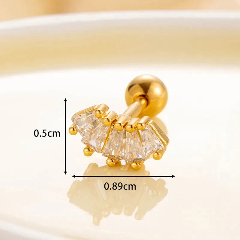 Dainty fan-shaped stud with sparkling zircon crystals on a gold base, perfect for adding a subtle, elegant shimmer to everyday looks.