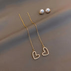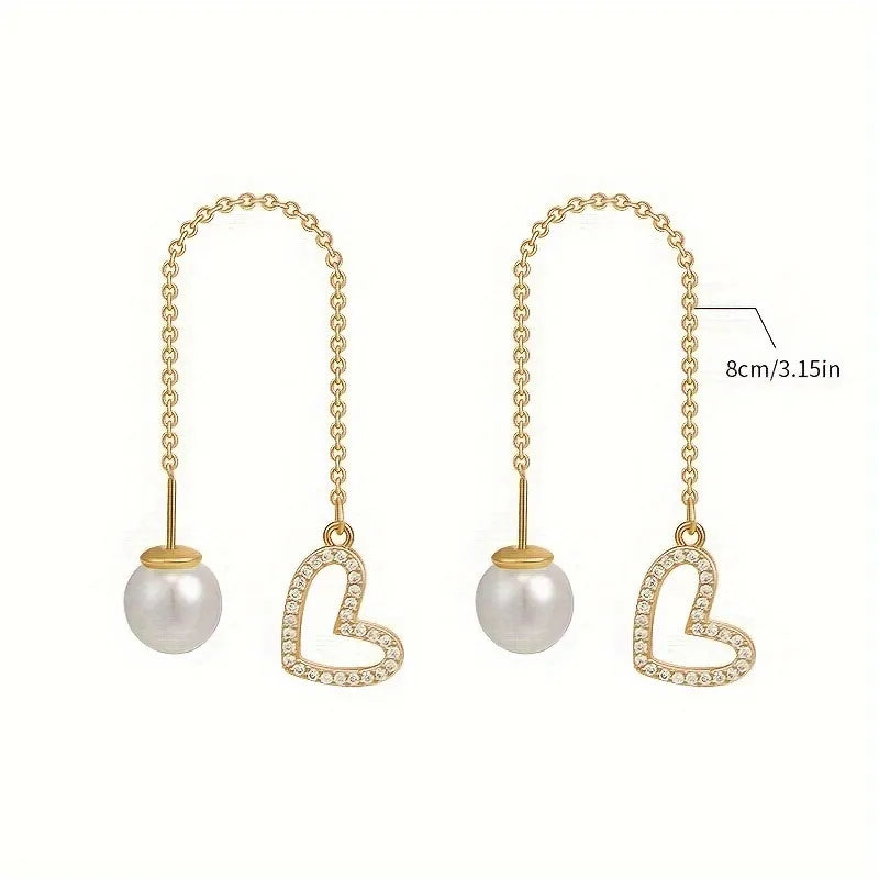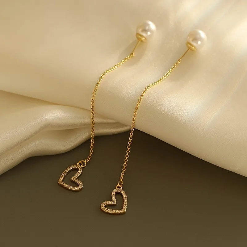 Delicate gold chains with pearls and sparkling heart charms, symbolizing love and grace in a soft, elegant silhouette.