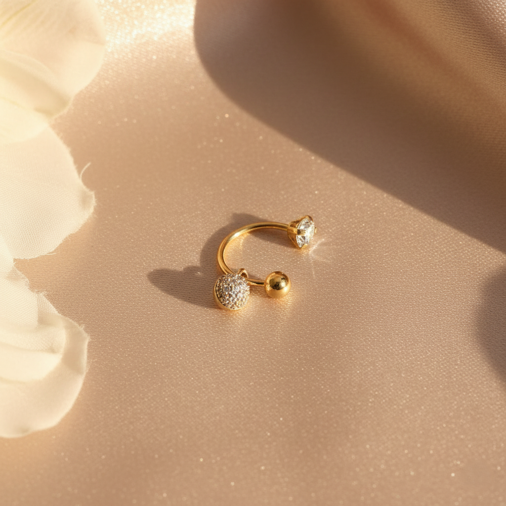 Elegant gold danglers with a sparkling pave sphere and a classic stud, adding refined brilliance to everyday and festive looks.