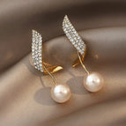 Gold crystal-studded curves holding luminous pearls, symbolizing elegance and purity. A refined, glamorous pair perfect for special occasions.
