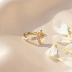 A sleek cross-shaped nath adorned with sparkling stones, blending modern charm with subtle elegance. Its minimal gold curve adds a bold, stylish touch to everyday looks.