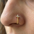 A delicate three-stone design symbolizing clarity and grace, Trilokana features shimmering zircons set in gold polish, adding a refined sparkle to your everyday traditional look....