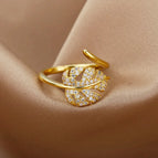 Twilight Leaf Spark Ring 18K Gold Plated Open Ring