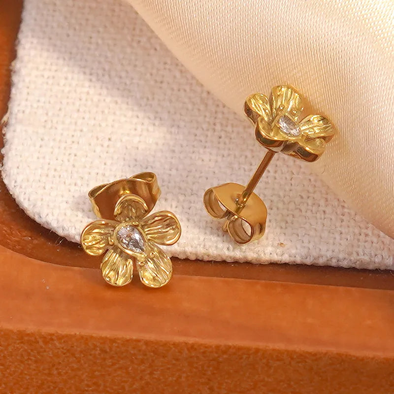 Tiny gold flower studs with a sparkling center stone, symbolizing freshness and grace. Perfect for everyday elegance, Daily Outings Family Gatherings Casual Occasions