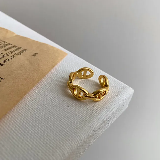 Minimal gold ear cuff featuring interlinked chain design, symbolising strength and connection. A modern statement of elegance with a bold yet refined finish.